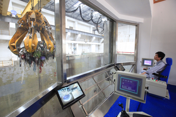 ????位於垃圾處理廠房6層的監控中心,是這套系統唯一能看到有操作員的地方。整個工作場所像一個考究的會客廳,談笑之間,咖啡、茶水已呈現在訪客面前。海螺創業公司副總經理李大明告訴記者,之所以把監控中心做得如此整潔、舒心,主要是給前來考察參觀此項技術和設施的各界人士一個直觀的感覺:垃圾處理原來可以這樣來做。這樣的場景也讓很多周邊百姓所折服。